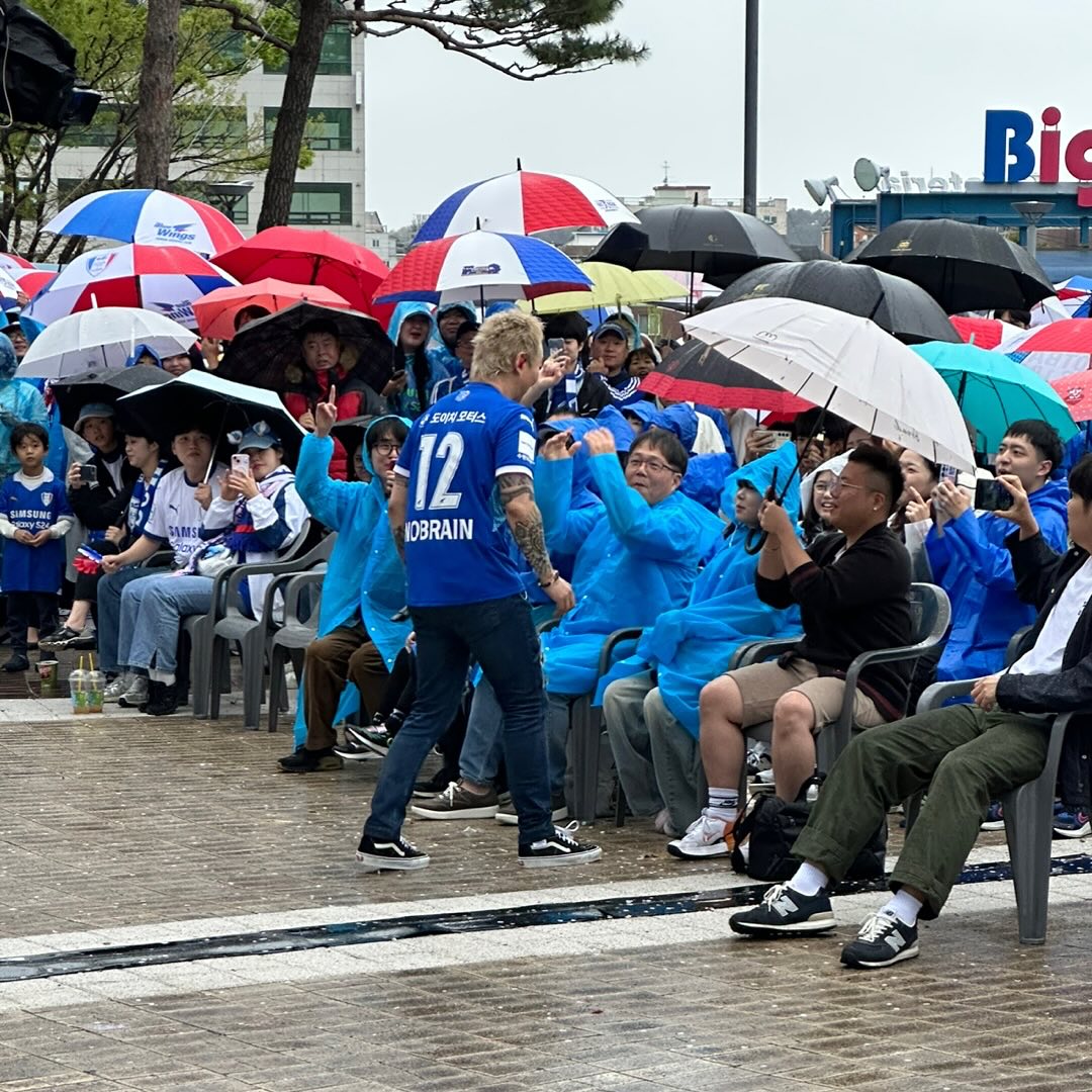 수원 삼성 블루윙즈의 팬으로, 수원 홈경기에서 여러 번 공연을 한 것은 물론 노브레인의 노래 여러 개를 편곡해 응원가로 헌정하기도 했다. 이 중 Little baby를 편곡한 나의 사랑 나의 수원은 수원을 대표하는 응원가이자 공식 클럽가[6]로 선정되기도 했다.