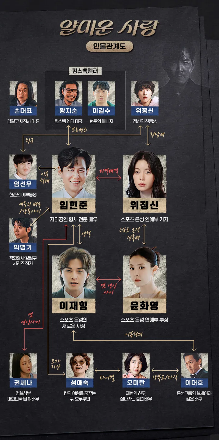 재형의 배다른 형. 은성그룹 회장으로 오랜 기간 배우 권세나와 내연관계이자 경제적 공동체로써 관계를 이어오고 있다. 대외적으로는 성공한 엔터 사업가로 알려져 있으나 음지에서 불법으로 비자금을 조성하고 이 비자금을 양지로 끌어올리기 위해 모종의 계획을 꾸미는데 걸리적거리는 기자 하나가 나타났다! 하룻강아지 범 무서운 줄 모르고 설치는 이 불청객을 어찌해야 할까?